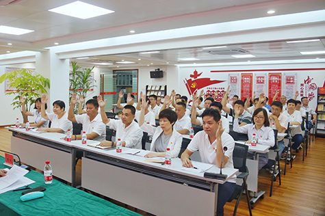 參會黨員現(xiàn)場舉手表決